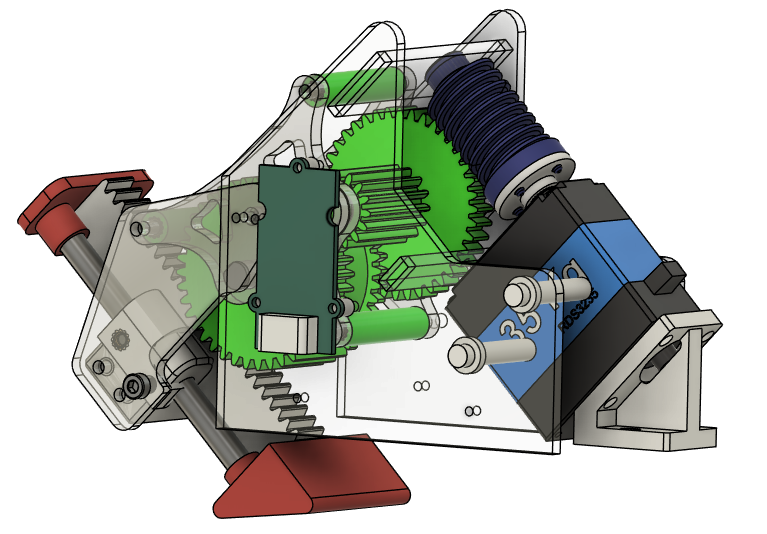 Based on torque calculations, redesigned gearbox from compound spur to worm wheel geartrain in Fusion360