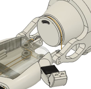 Designed and prototyped a prosthetic arm to convert arm rotation into a grasping motion